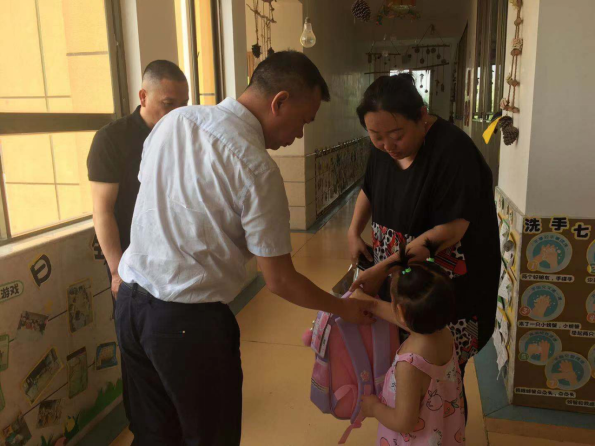 在兩位小朋友所就讀的學校,吳總、張總向家長和老師詳細了解了小朋友的學習、生活情況及家庭狀況,并代表公司黨支部、董事會將精心準備的書包、文具等禮物送到兩位小朋友手上,同時鼓勵兩位小朋友好好學習,健康快樂成長。兩位小朋友臉上露出幸福的笑容。
